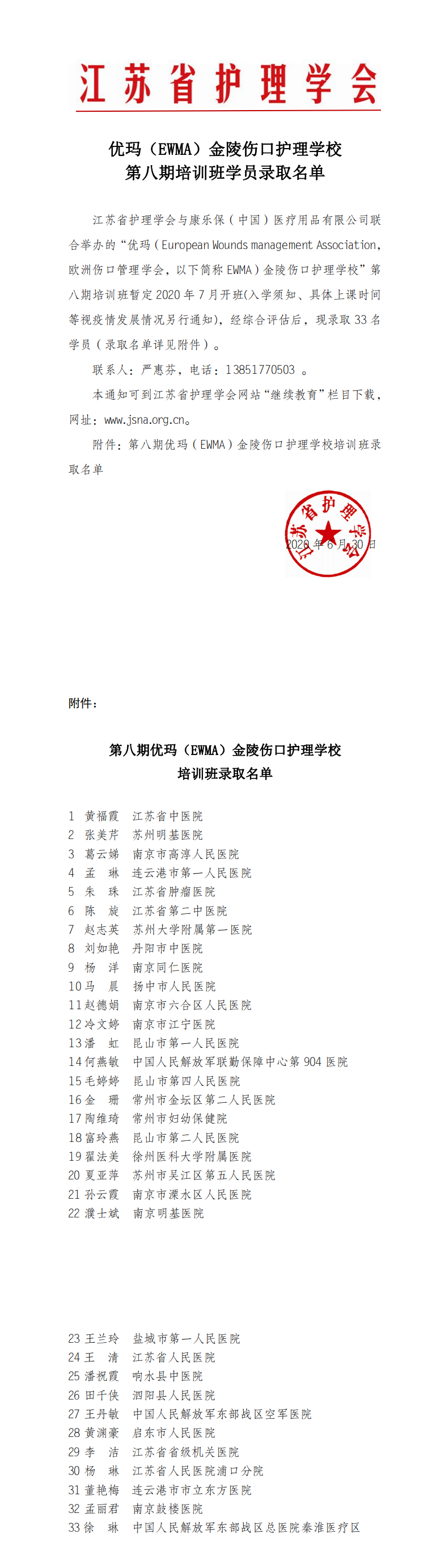 第八期优玛(EWMA)金陵伤口护理学校录取名单.pdf