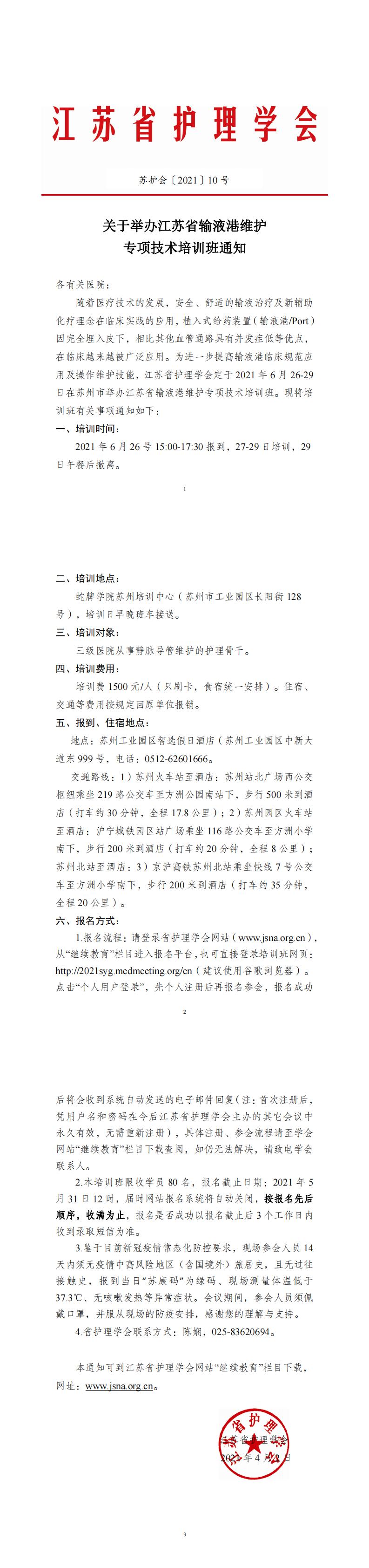 关于举办江苏省输液港维护专项技术培训班通知