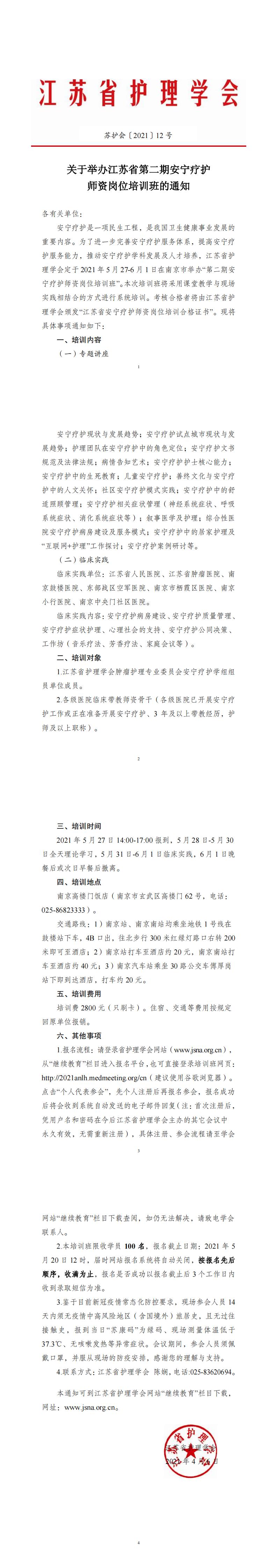 关于举办江苏省第二期安宁疗护师资岗位培训班的通知