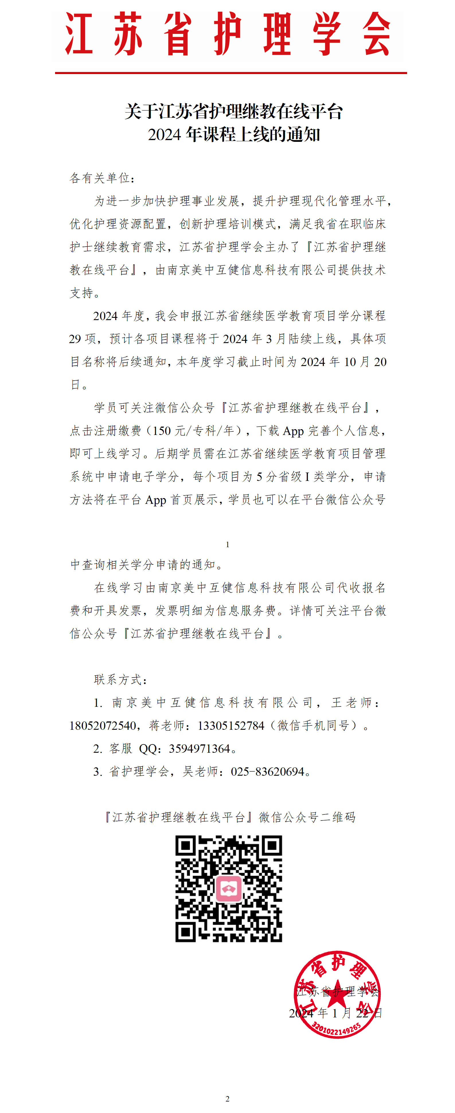 关于江苏省护理继教在线平台2024年课程上线的通知