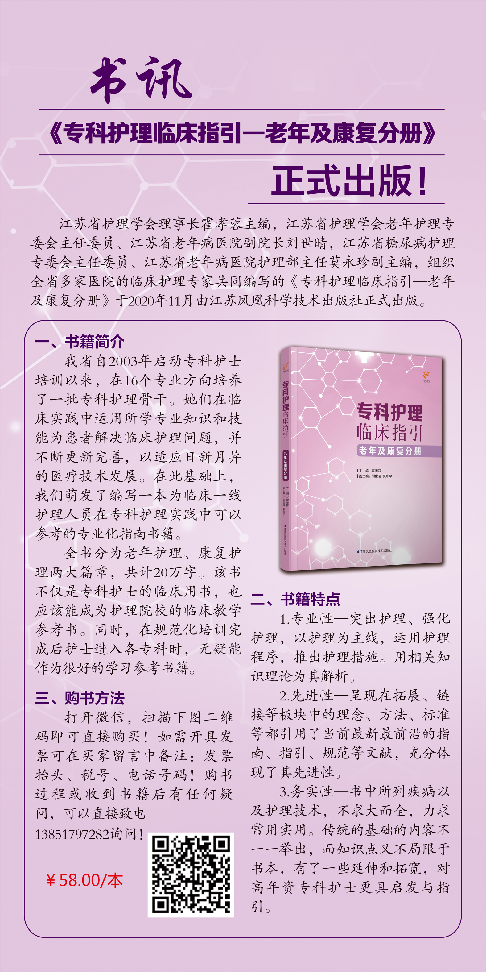 《专科护理临床指引-老年及康复分册》正式出版!(内附购买方式)