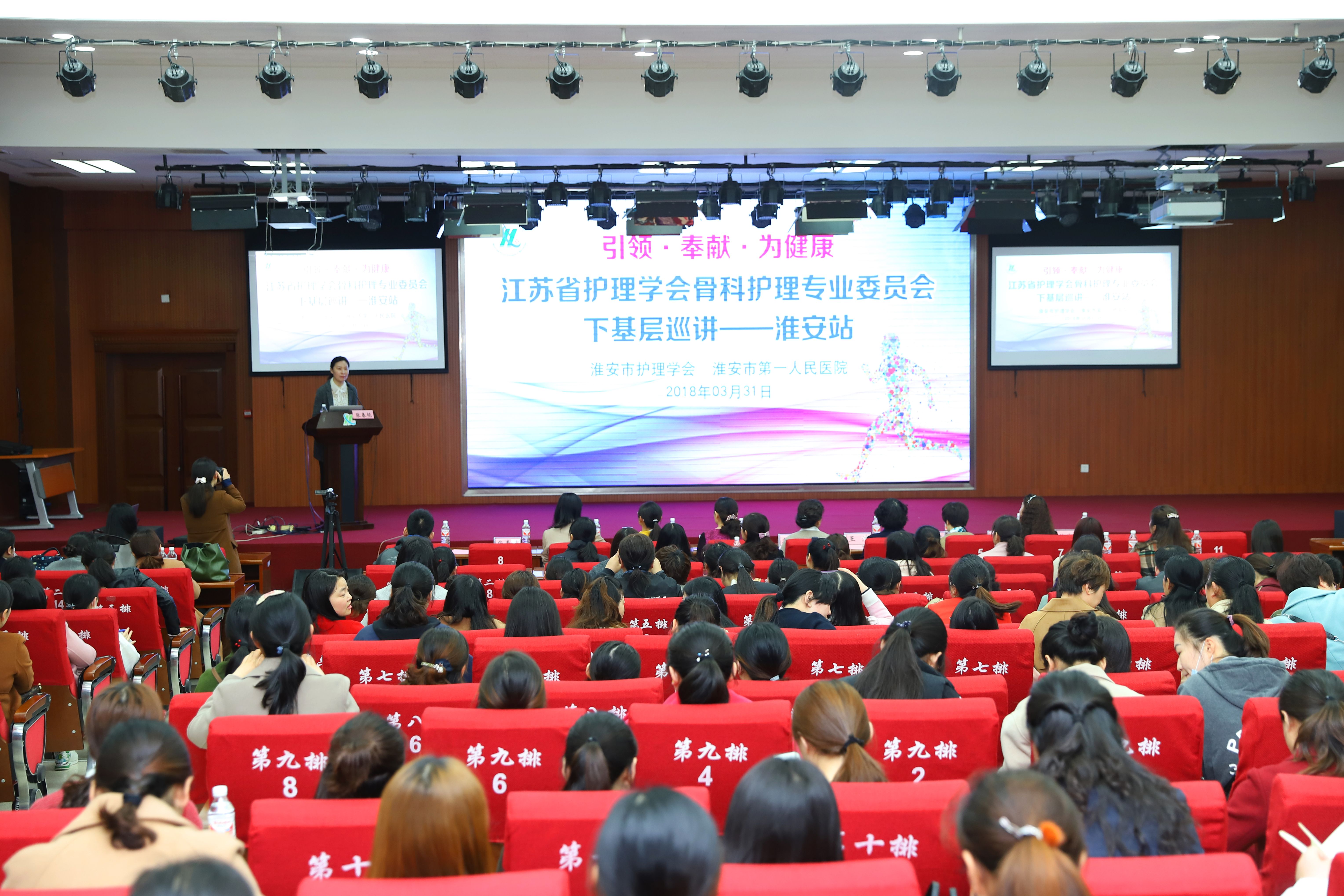 2018年3月31日在淮安市拉开了首次巡讲的序幕,江苏省护理学会霍孝蓉理事长亲自率巡讲专家并做讲话。本次巡讲活动得到了淮安市护理学会的高度重视,以及淮安市第一人民医院的鼎力支持,淮安市第一人民医院副院长李玉峰,淮安市第一人民医院护理部主任、淮安市护理学会理事长屠丽娟等出席致辞,来自淮安地区80多个单位的300余名骨科护理同仁参加活动。
