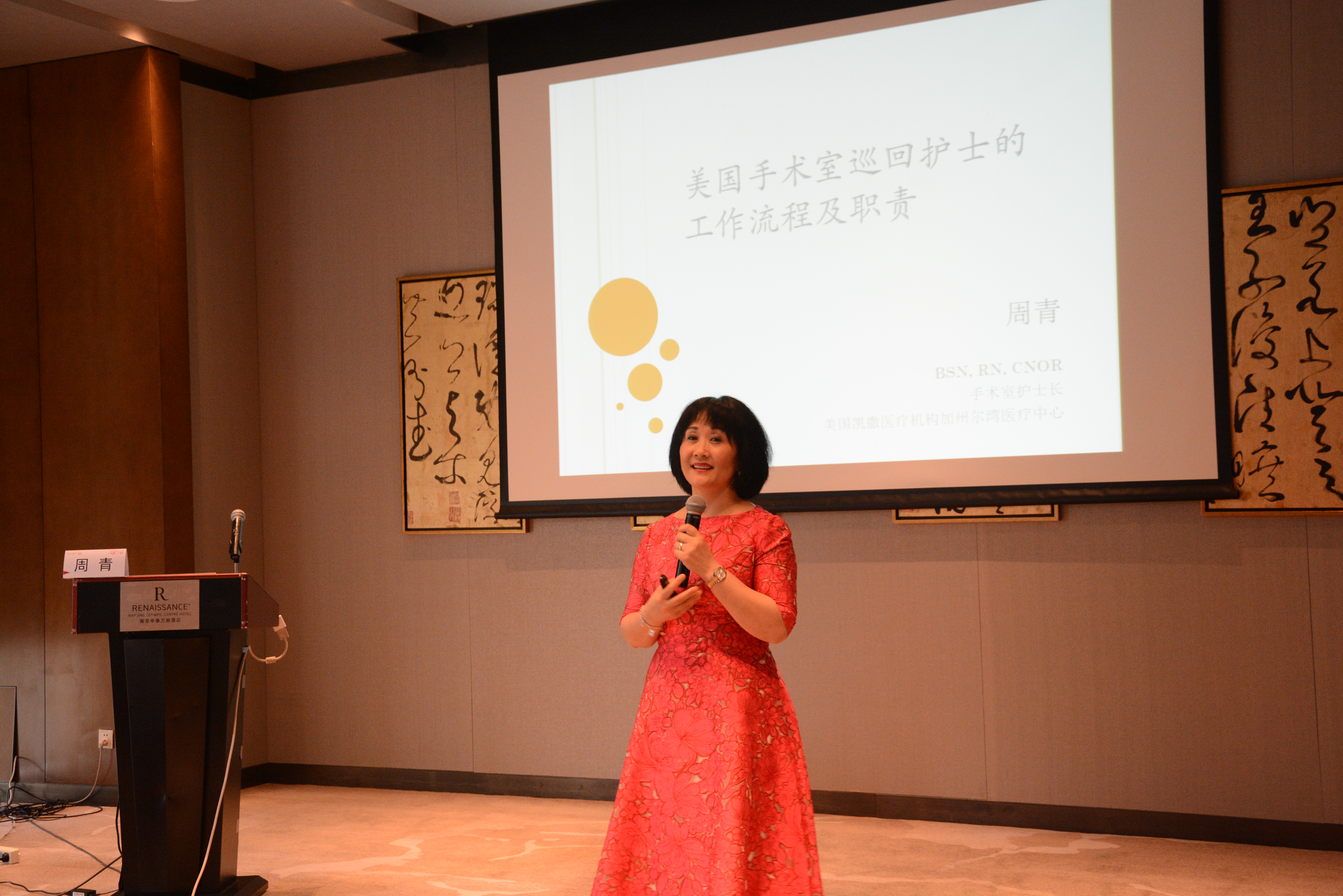 学术交流部分特邀美国凯撒医疗机构的周青老师就委员们高度关注的美国手术室护理改进项目、WHO2016SSI预防指南及围手术期术后强化康复(ERAS)等内容进行了专题讲座。委员们就物品清点、感控等热点问题与周青老师热烈互动、充分交流,中西方文化的碰撞带给委员们更多的灵感与启迪。