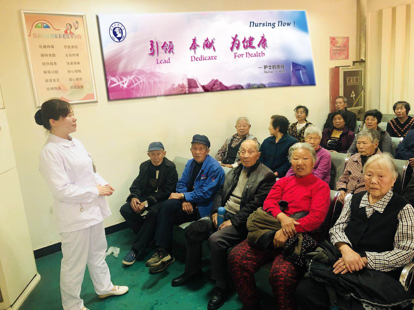 2018年5月10日,徐医附院的甲乳科一行10人组建的护理服务队走进徐州市博济敬老院,开展健康宣教,帮助他们进行自我调养和保健。