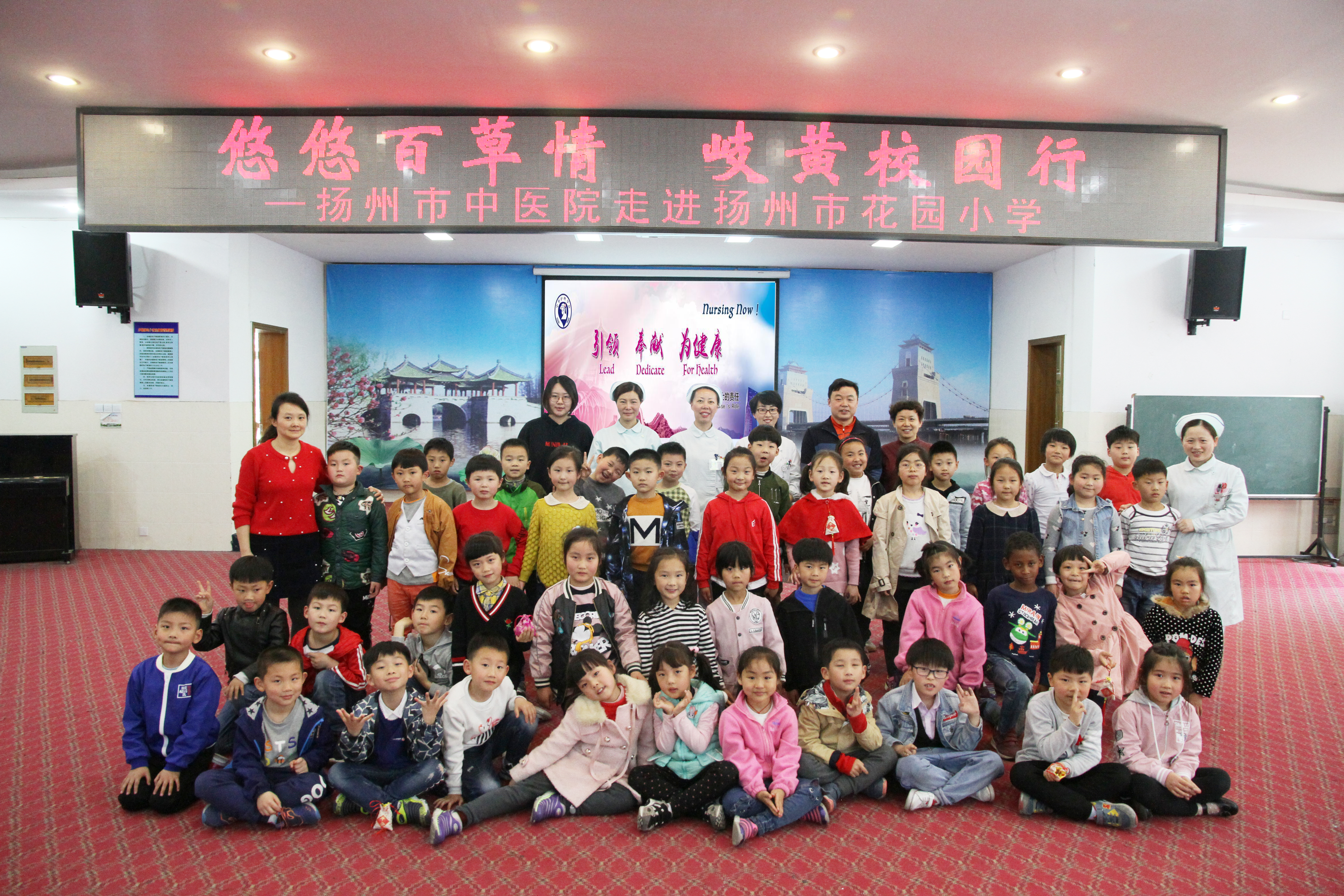 2018年4月2日,扬州市中医院由儿科医生和护士一行9人组成的中医宣传服务队走进了扬州市花园小学,开展健康宣教,教会孩子们开展中医健康操及自我保健。