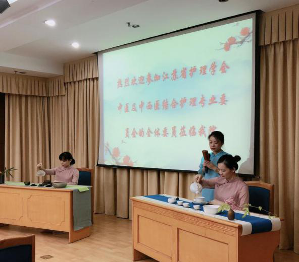 9月18日上午10:00,中医及中西医结合护理专委会全体委员会议准时召开。首先由江苏省中医院的3位护士带来了8分钟的茶艺表演,在优美的古琴声和优雅的朗诵声中,尽显中医茶文化的婉约之美。现场的护理同仁们乐享其中,在品鉴香茶后更是赞不绝口,纷纷表示意犹未尽。