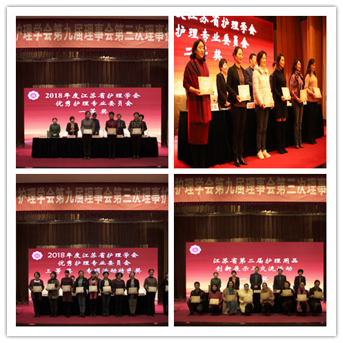 开幕式上表彰了“2018年度优秀专业委员会”、“江苏省第二届护理用品创新展示与交流”获奖者。
