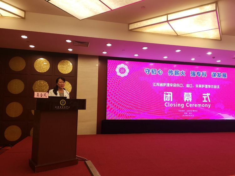 吴金凤秘书长致闭幕词,相信江苏省护理学会伤口造口失禁护理专业的明天更加美好。