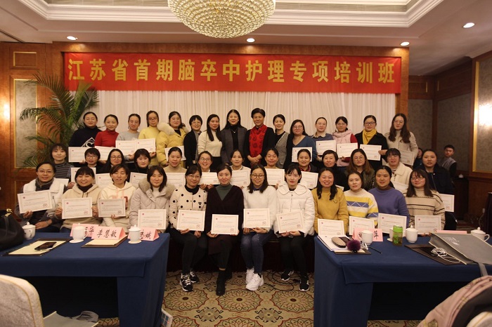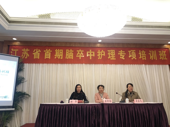江苏省护理学会理事长霍孝蓉、秘书长吴金凤、江苏省神经内科护理专业委员会主任委员谢萍参加此次培训班的开幕式,霍孝蓉理事长做开幕式致辞。