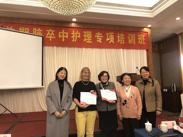 苏大附一院方琪副院长介绍了急性脑卒中的早期识别与绿色通道建立;苏北人民医院卒中中心主任李晓波主任对2019AHA/ASA急性缺血性卒中早期管理指南进行了解读;德中护理协会的穆勒做了关于德国护理理念-基于中风病人实例的分享、西蒙做了关于护理职业培训中的实践指导分享;江苏省人民医院康复科副主任陆晓介绍了脑卒中患者如何进行脑卒中早期康复;北京天坛医院的袁媛护士长讲述了神经重症医护保“胃”战……我省多位神经内科护理领域专家参与此次授课,重点围绕脑卒中相关领域的专业知识、技能延申等进行专业讲解,学员们纷纷表示课程非常内容非常精彩、理论联系临床实际病例、受益良多。