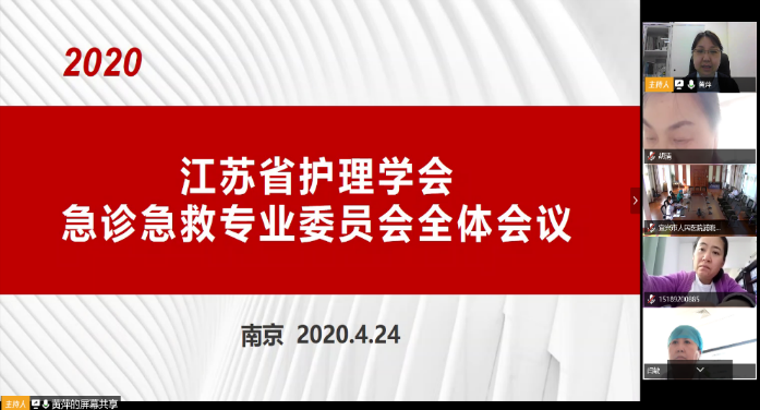 2020年4月24日,正值国内外疫情防控形势处于阶段性的变化,为慎始如终、毫不放松做好疫情防控工作,江苏省护理学会急诊急救护理专业委员会通过腾讯视频的方式,召开了2020年第一次全体委员扩大会视频会议。江苏省护理学会理事长霍孝蓉女士、副理事长陈雁主任、秘书长吴金凤女士、副秘书长孙翠华女士、专委会全体委员、院前急救学组组长共计67人参加了此次会议。