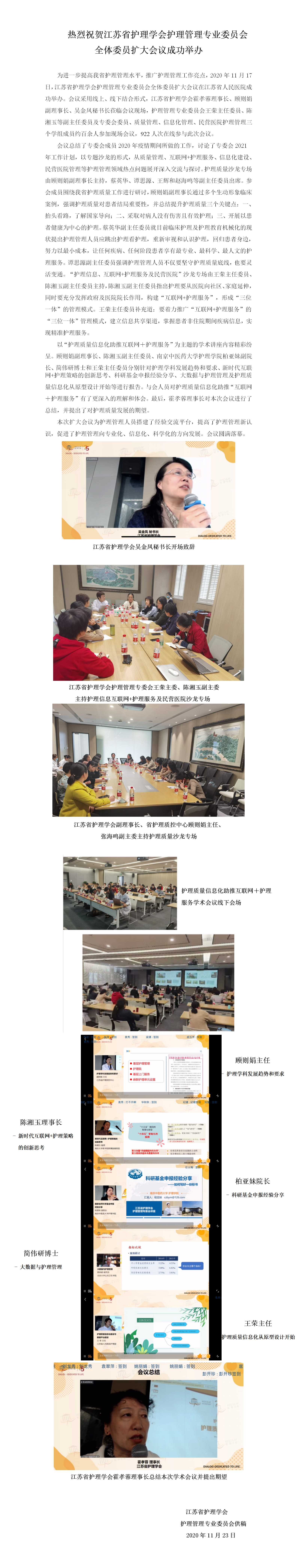 热烈祝贺江苏省护理学会护理管理专业委员会全体委员扩大会议成功举办