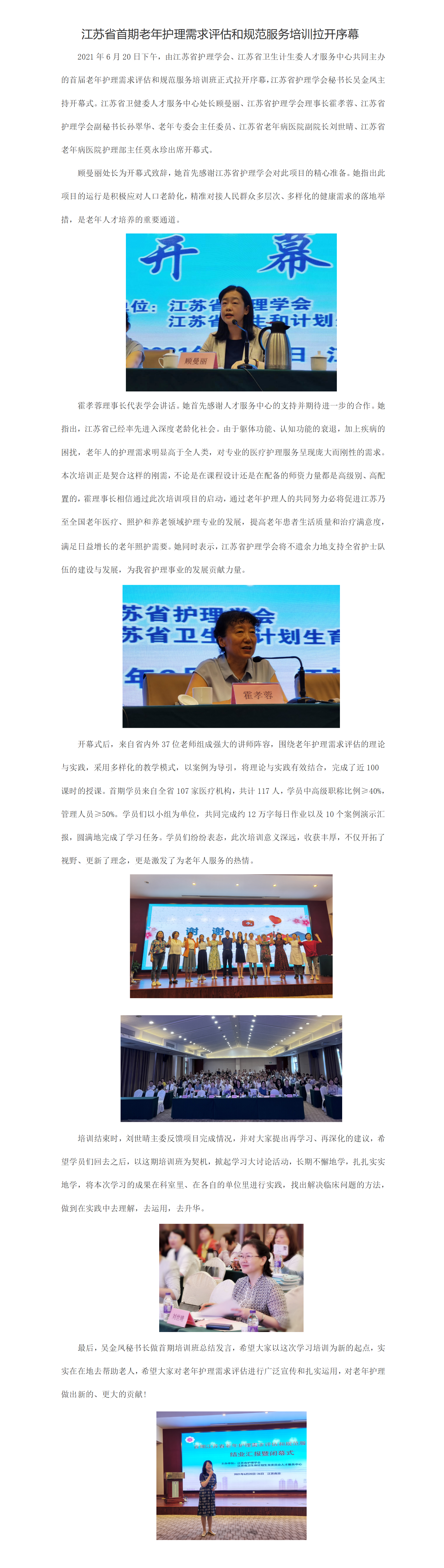 江苏省首期老年护理需求评估和规范服务培训拉开序幕