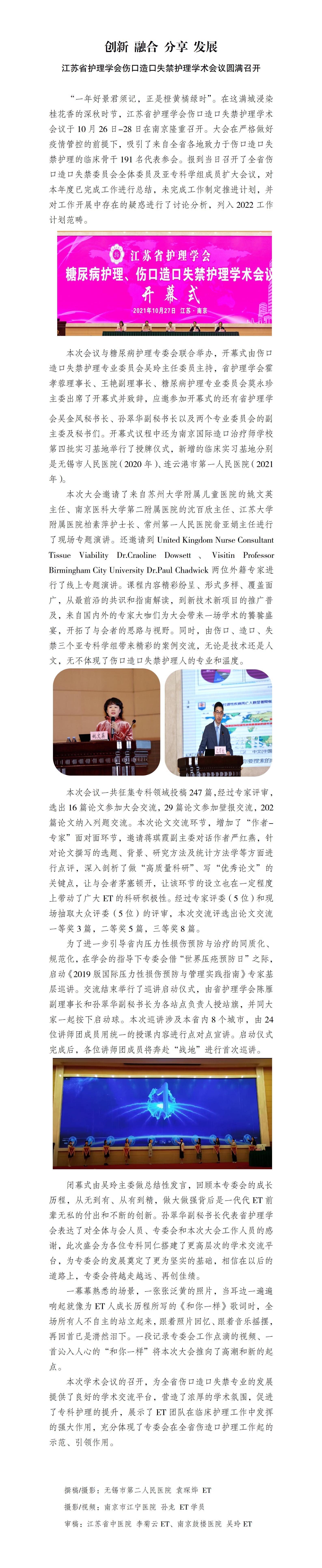 创新 融合 分享 发展——江苏省护理学会伤口造口失禁护理学术会议圆满召开
