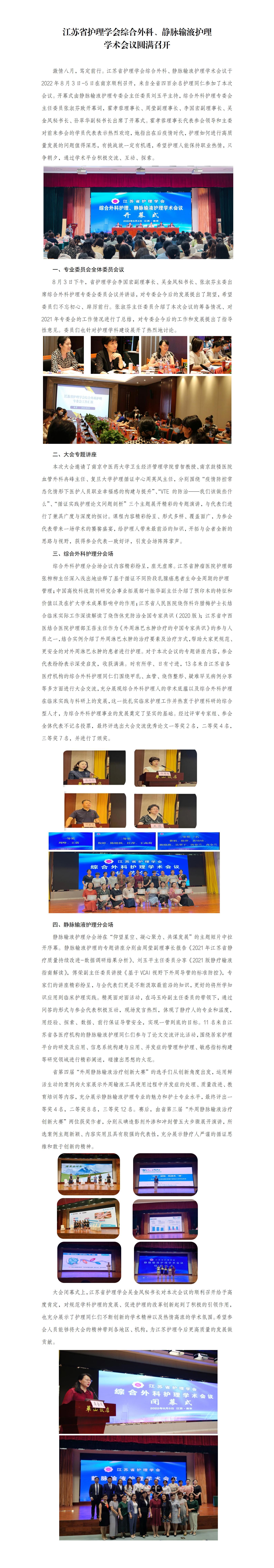 江苏省护理学会综合外科、静脉输液护理学术会议圆满召开