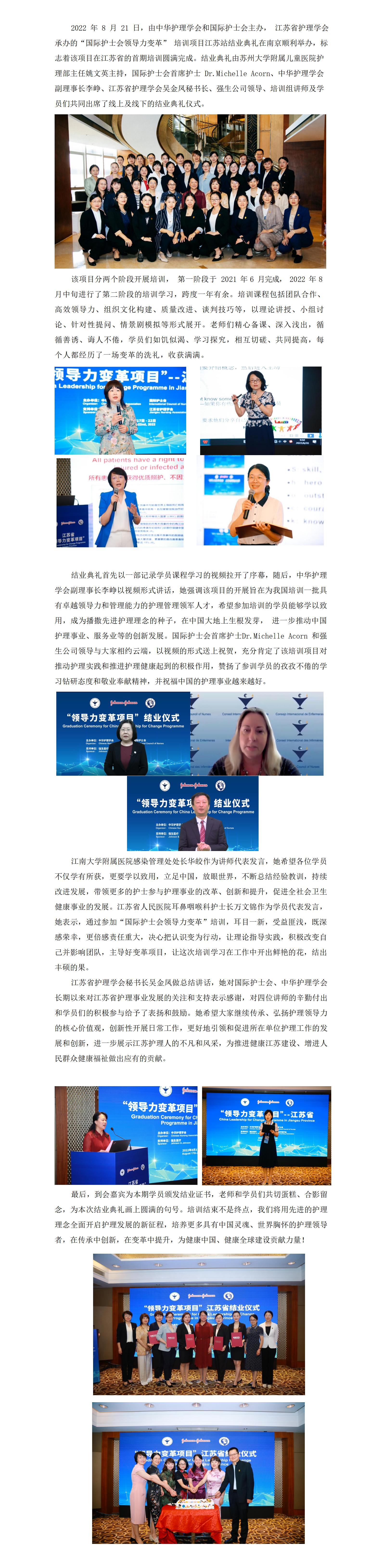 “国际护士会领导力变革”培训项目江苏站结业典礼在宁举办