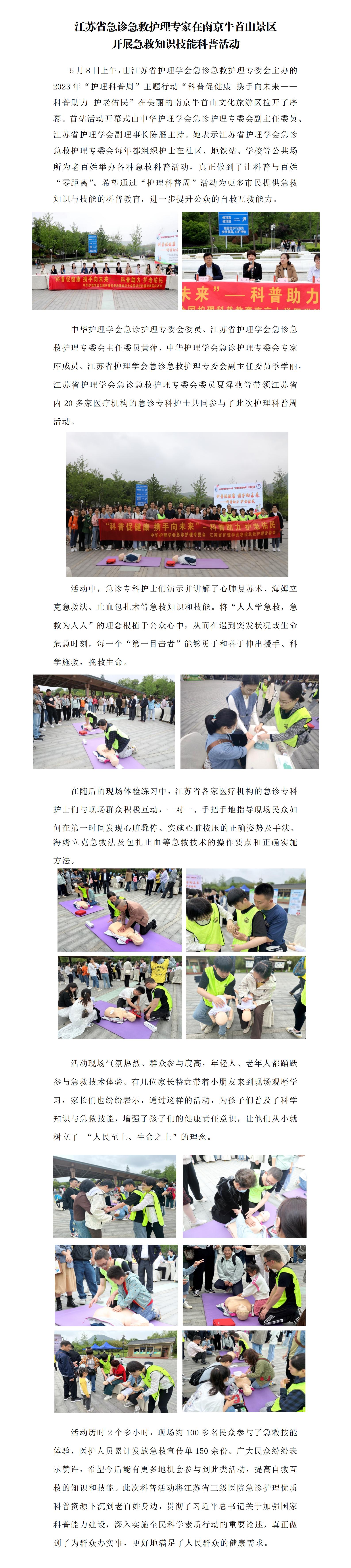 江苏省急诊急救护理专家在南京牛首山景区开展急救知识技能科普活动