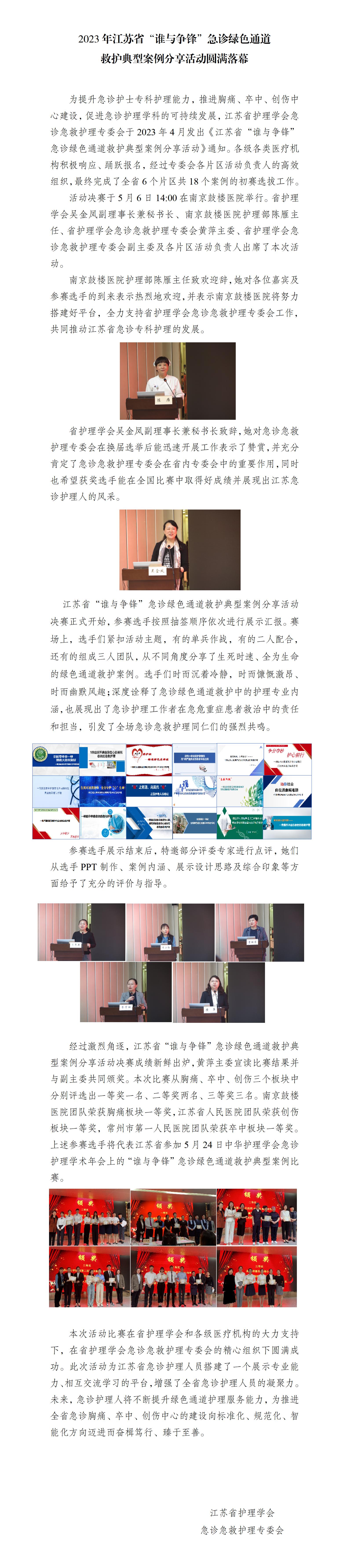 2023年江苏省“谁与争锋”急诊绿色通道救护典型案例分享活动圆满落幕