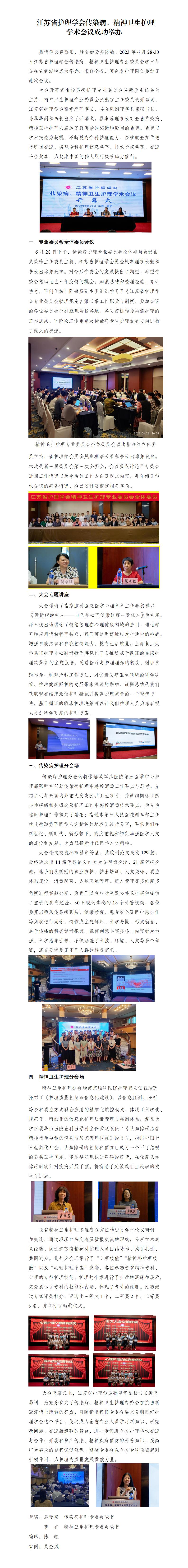 江苏省护理学会传染病、精神卫生护理学术会议成功举办