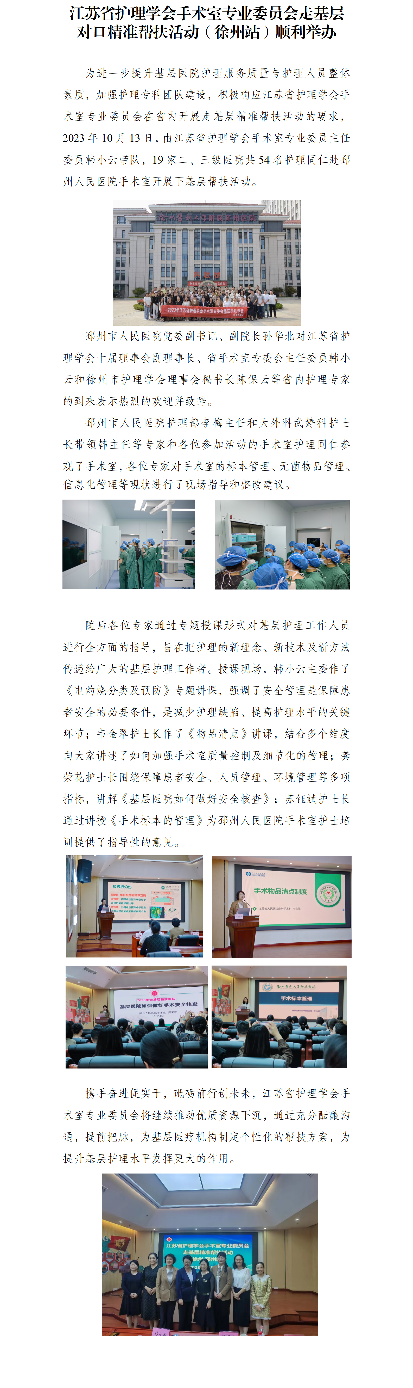 江苏省护理学会手术室专业委员会走基层对口精准帮扶活动(徐州站)顺利举办