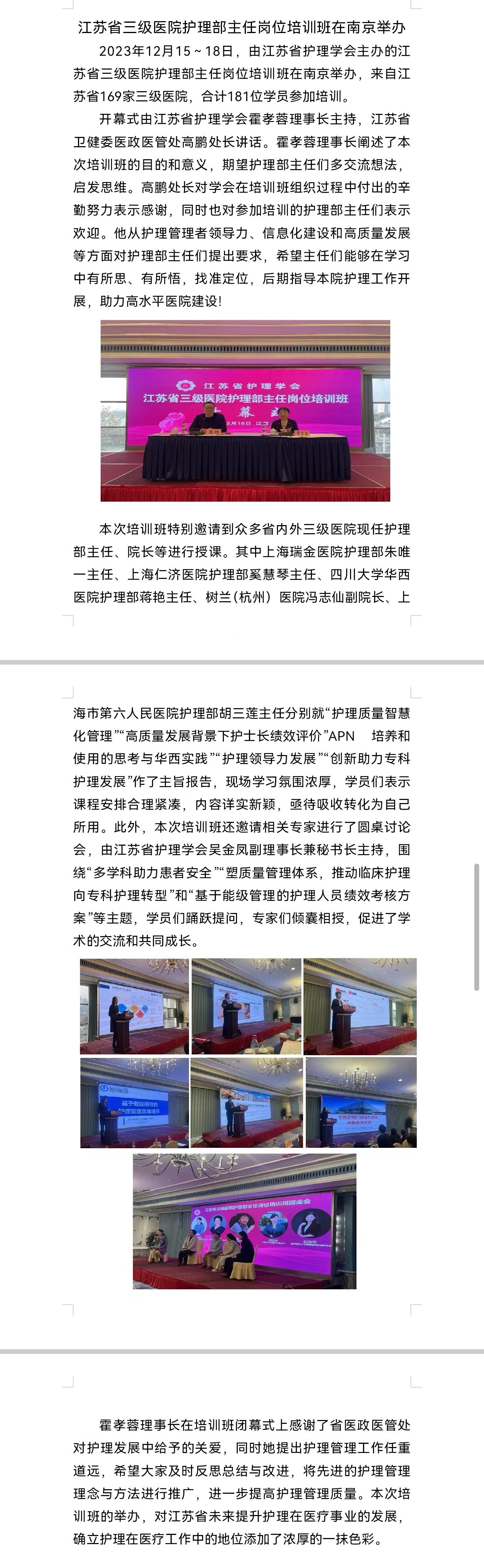 江苏省三级医院护理部主任岗位培训班在南京举办