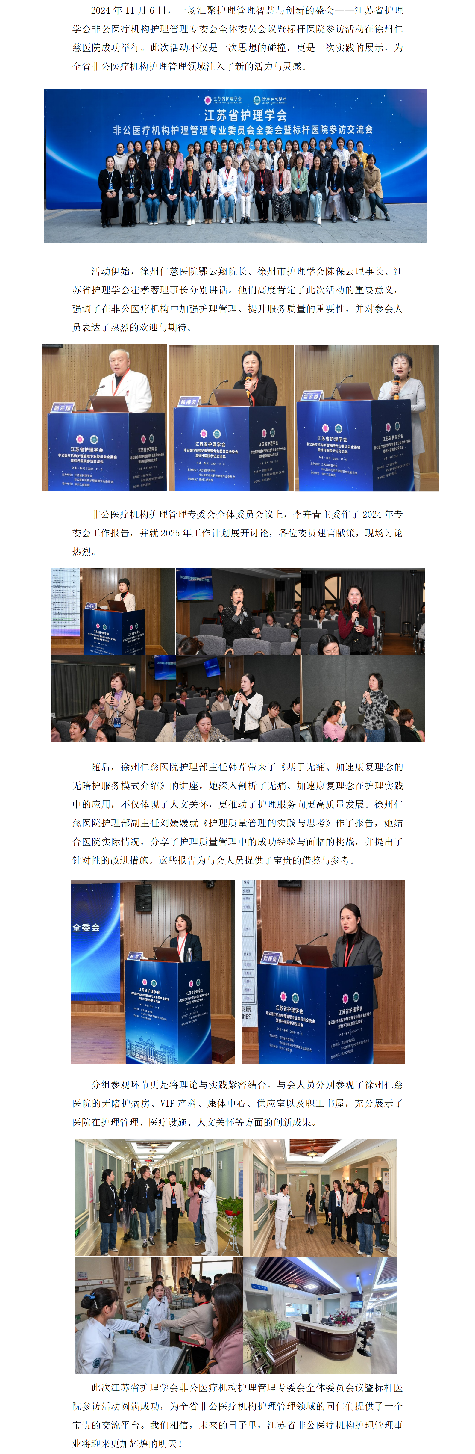 江苏省护理学会非公医疗机构护理管理专委会全体委员会议暨标杆医院参访活动圆满落幕