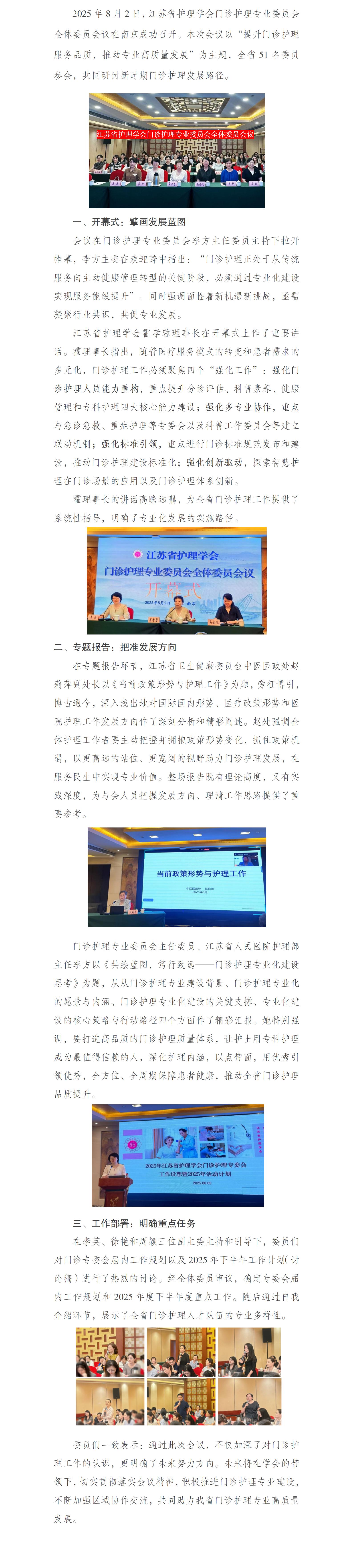 锚定发展新坐标,凝聚共识启新程——江苏省护理学会门诊护理专业委员会全体委员会议在宁圆满召开