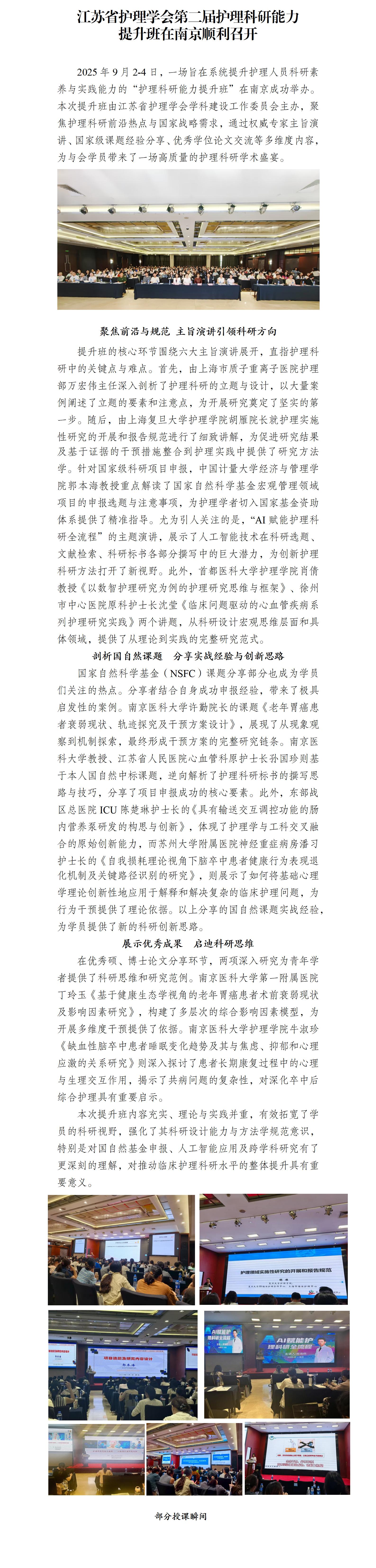 江苏省护理学会第二届护理科研能力提升班在南京顺利召开