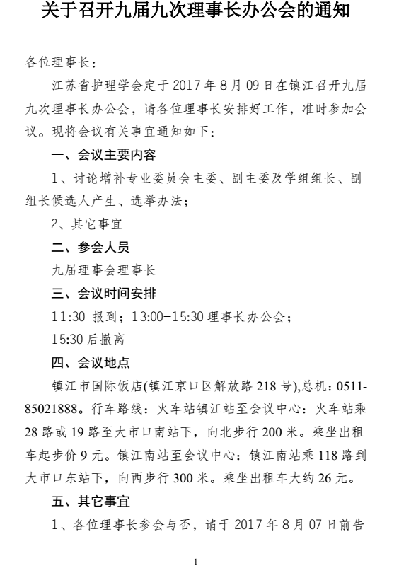 关于召开九届九次理事长办公会的通知