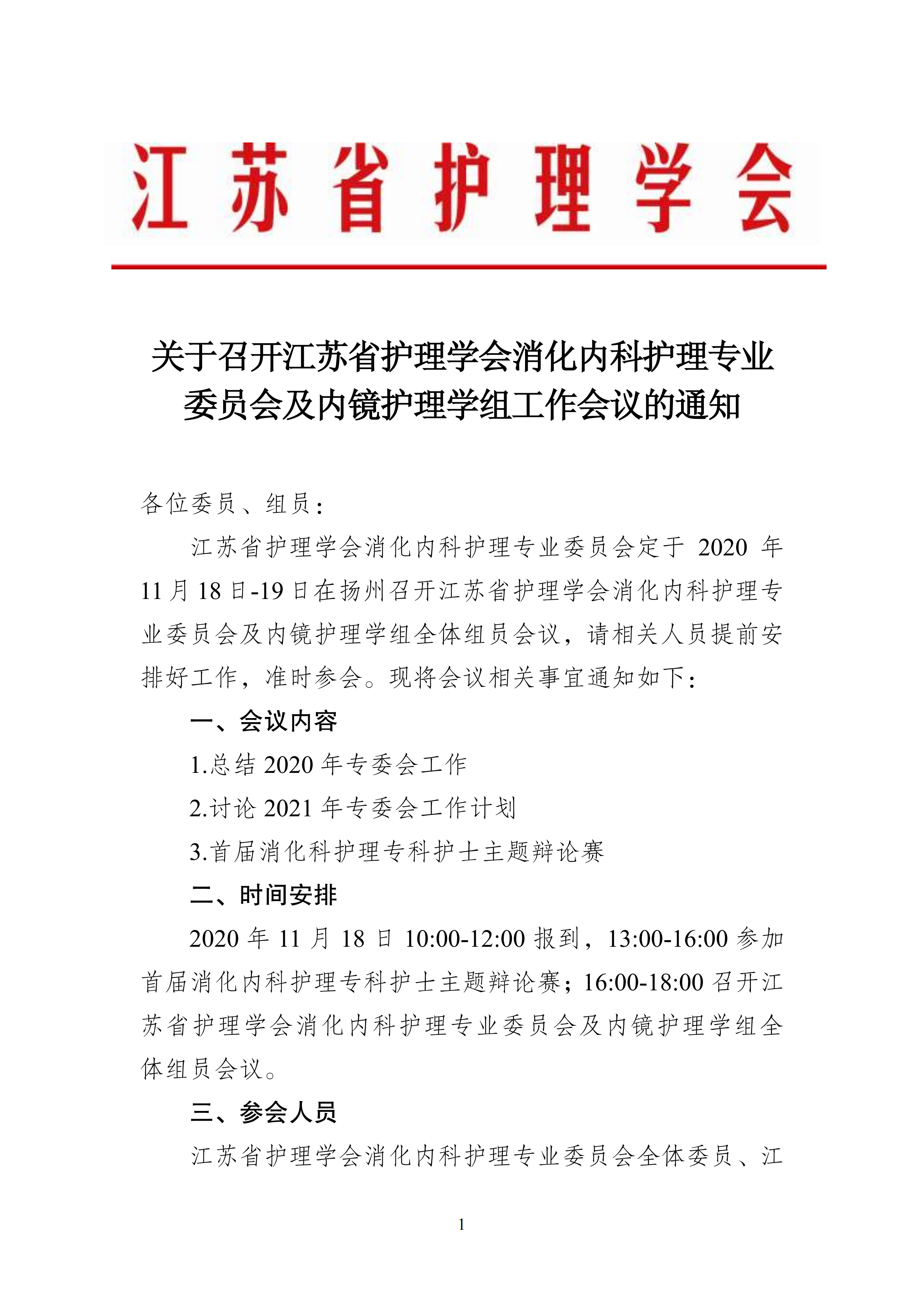 关于召开江苏省护理学会消化内科护理专业委员会及内镜护理学组工作会议的通知