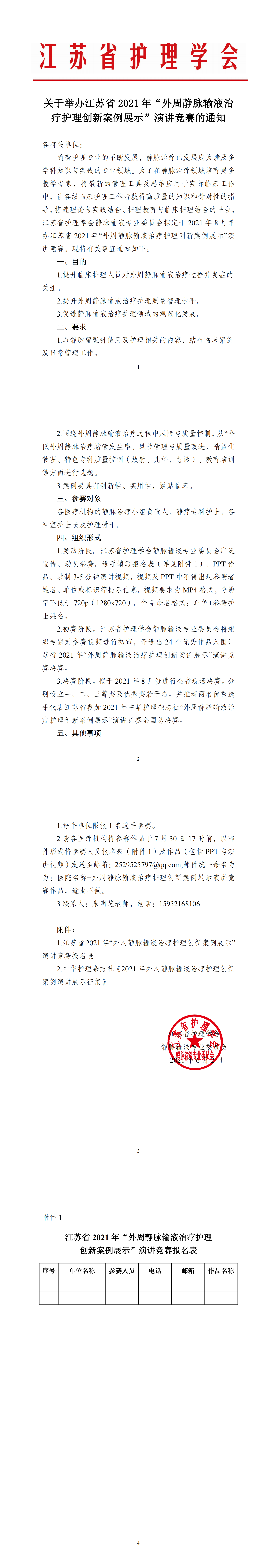 关于举办江苏省2021年“外周静脉输液治疗护理创新案例展示”演讲竞赛的通知