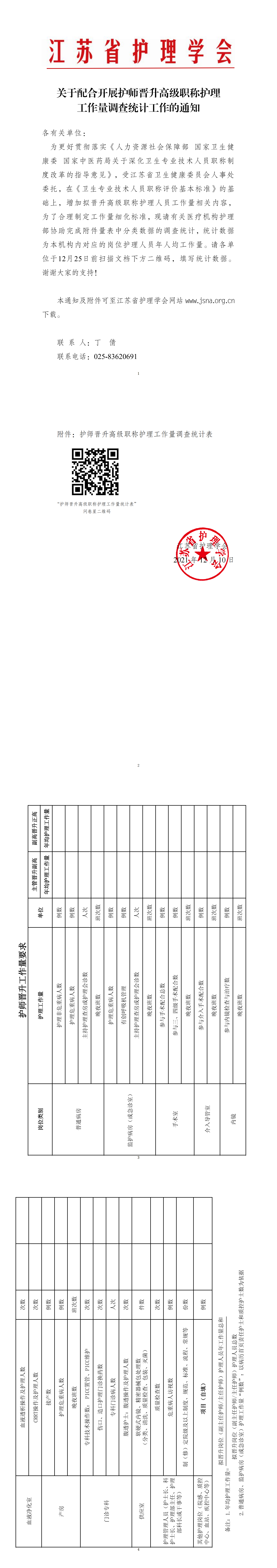 关于配合开展护师晋升高级职称护理工作量调查统计工作的通知