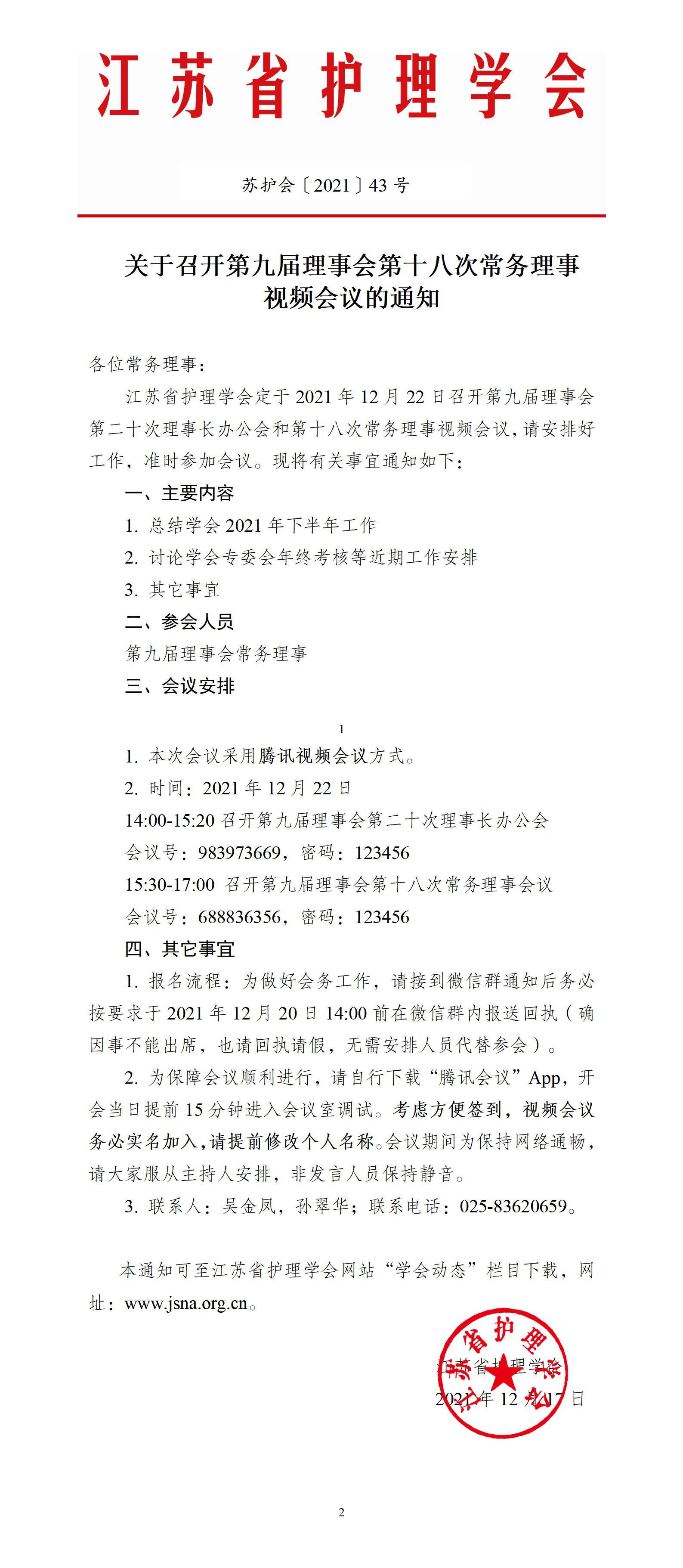 关于召开第九届理事会第十八次常务理事视频会议的通知
