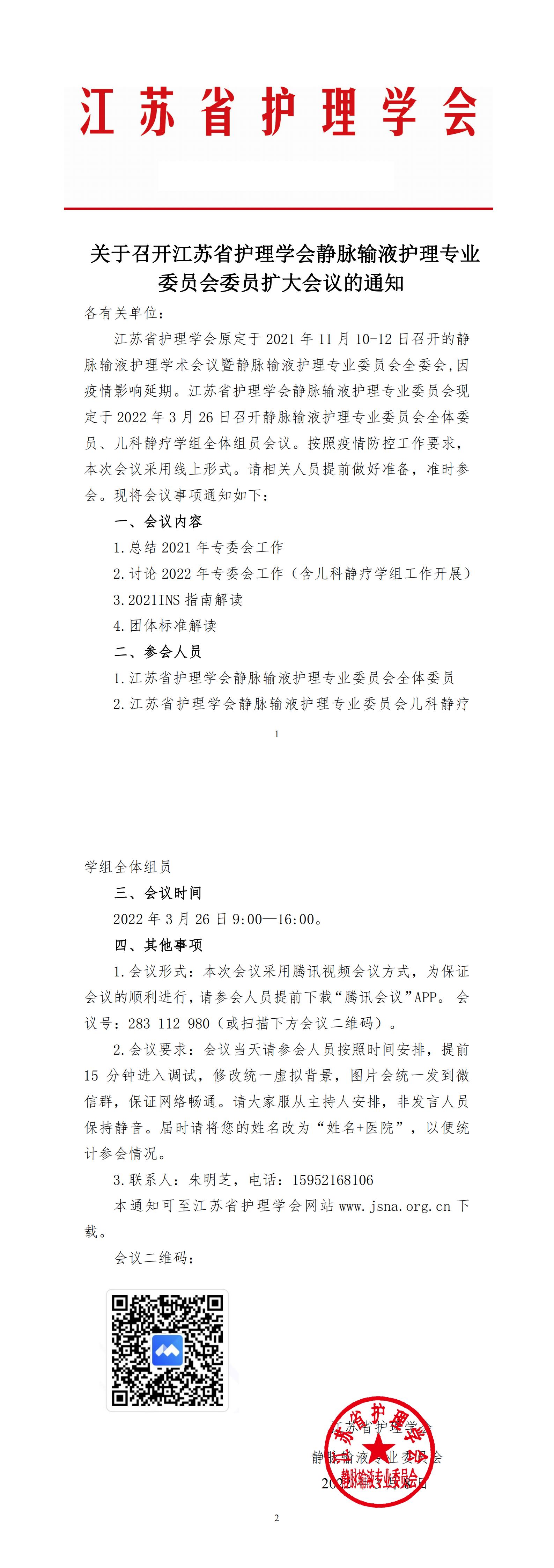关于召开江苏省护理学会静脉输液护理专业委员会委员扩大会议的通知