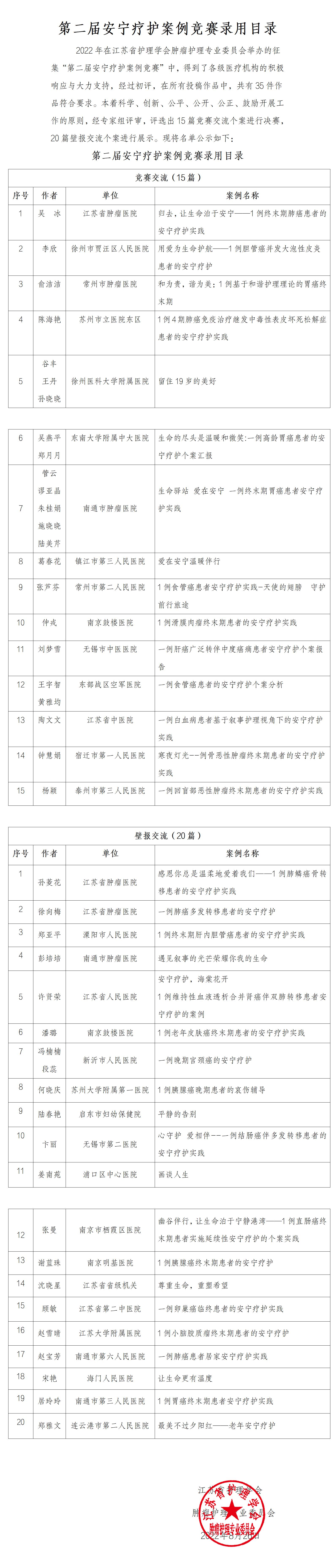 第二届安宁疗护案例竞赛录用目录