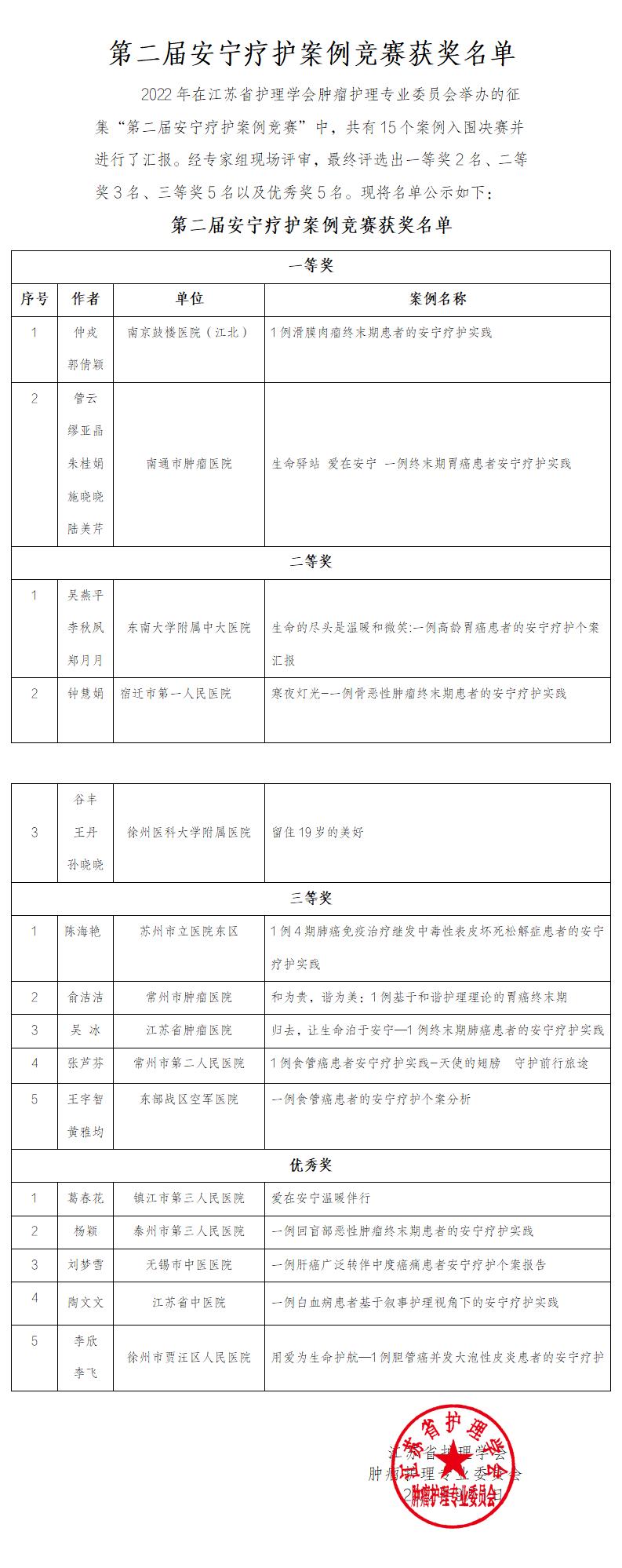 第二届安宁疗护案例竞赛获奖名单