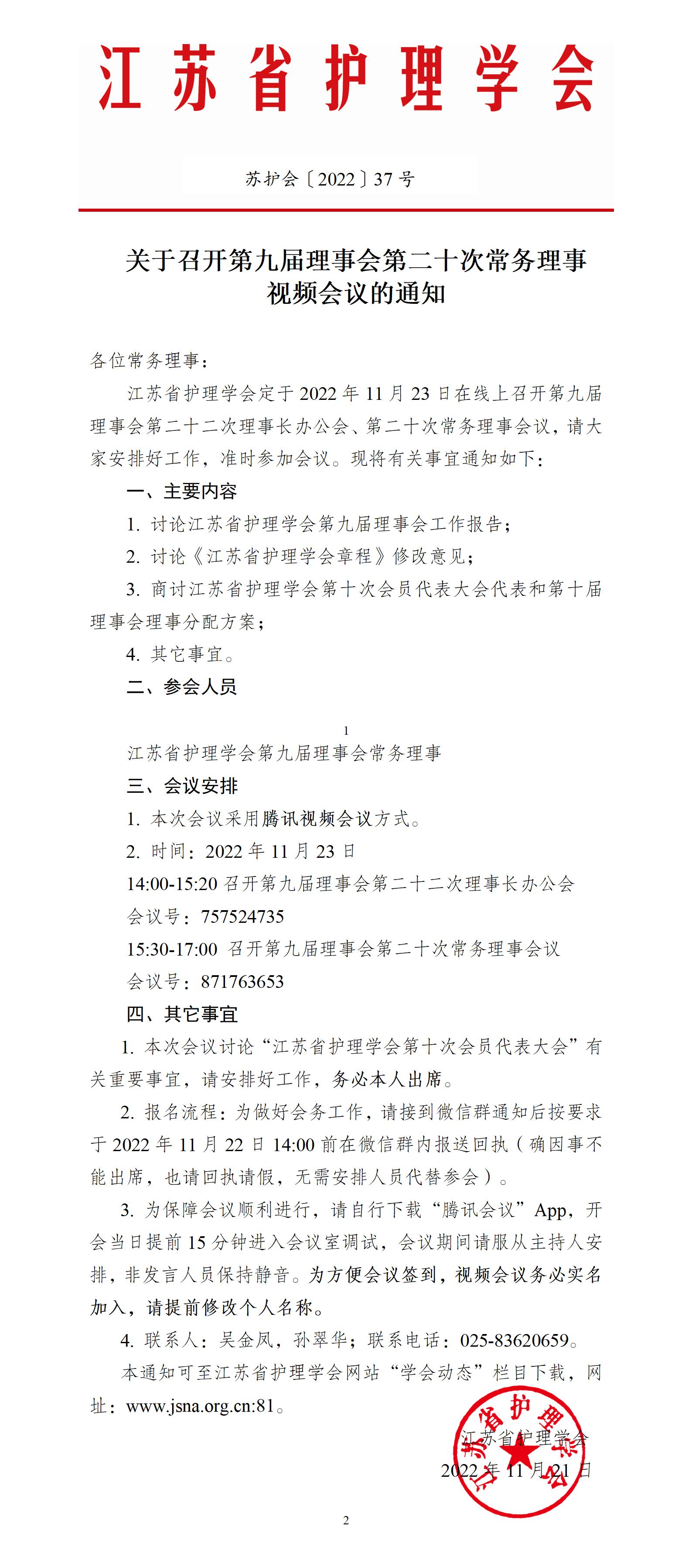 关于召开第九届理事会第二十次常务理事视频会议的通知