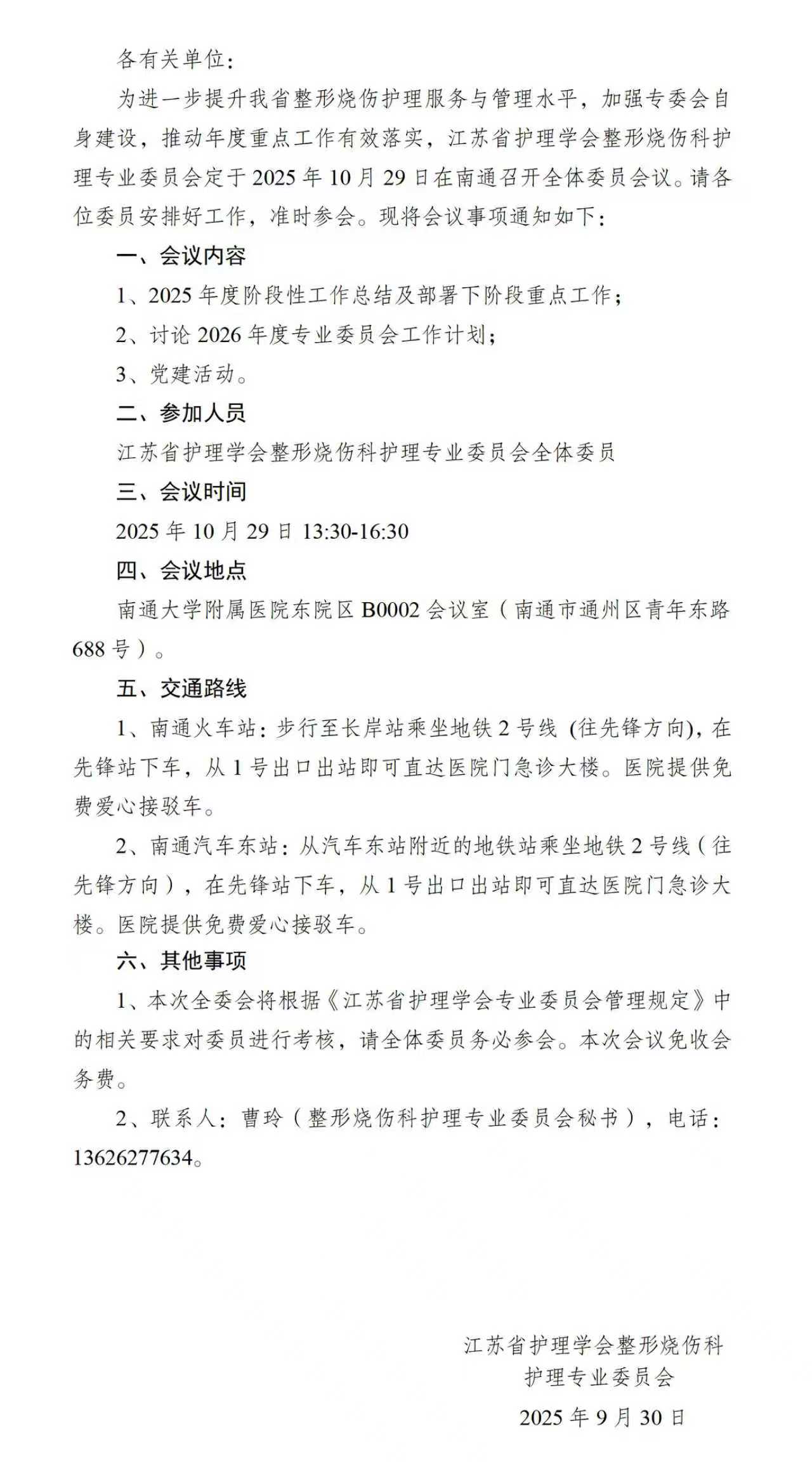 关于召开江苏省护理学会整形烧伤科护理专业委员会全体委员会议的通知.pdf
