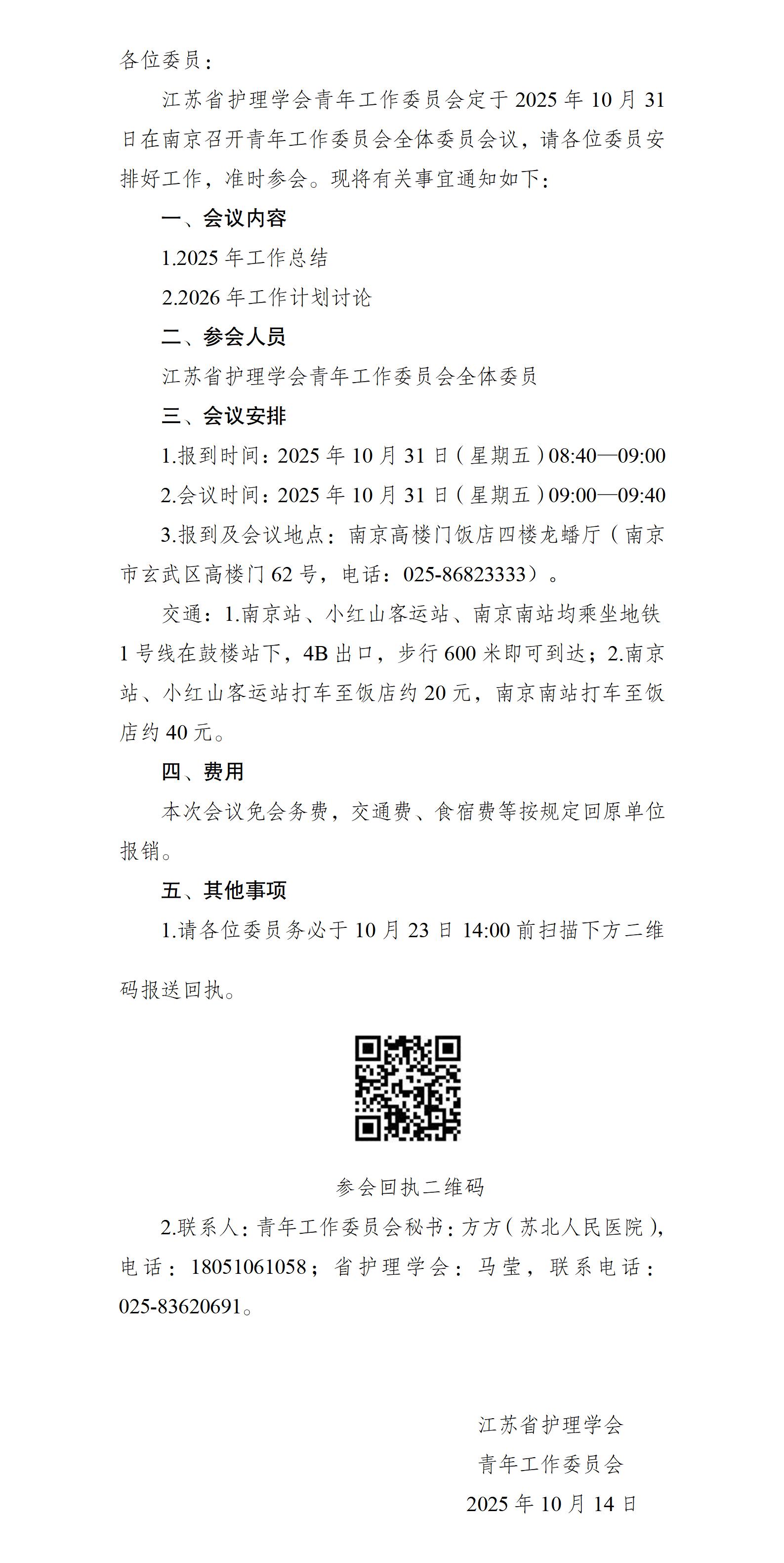 关于召开江苏省护理学会青年工作委员会全体委员会议的通知.pdf
