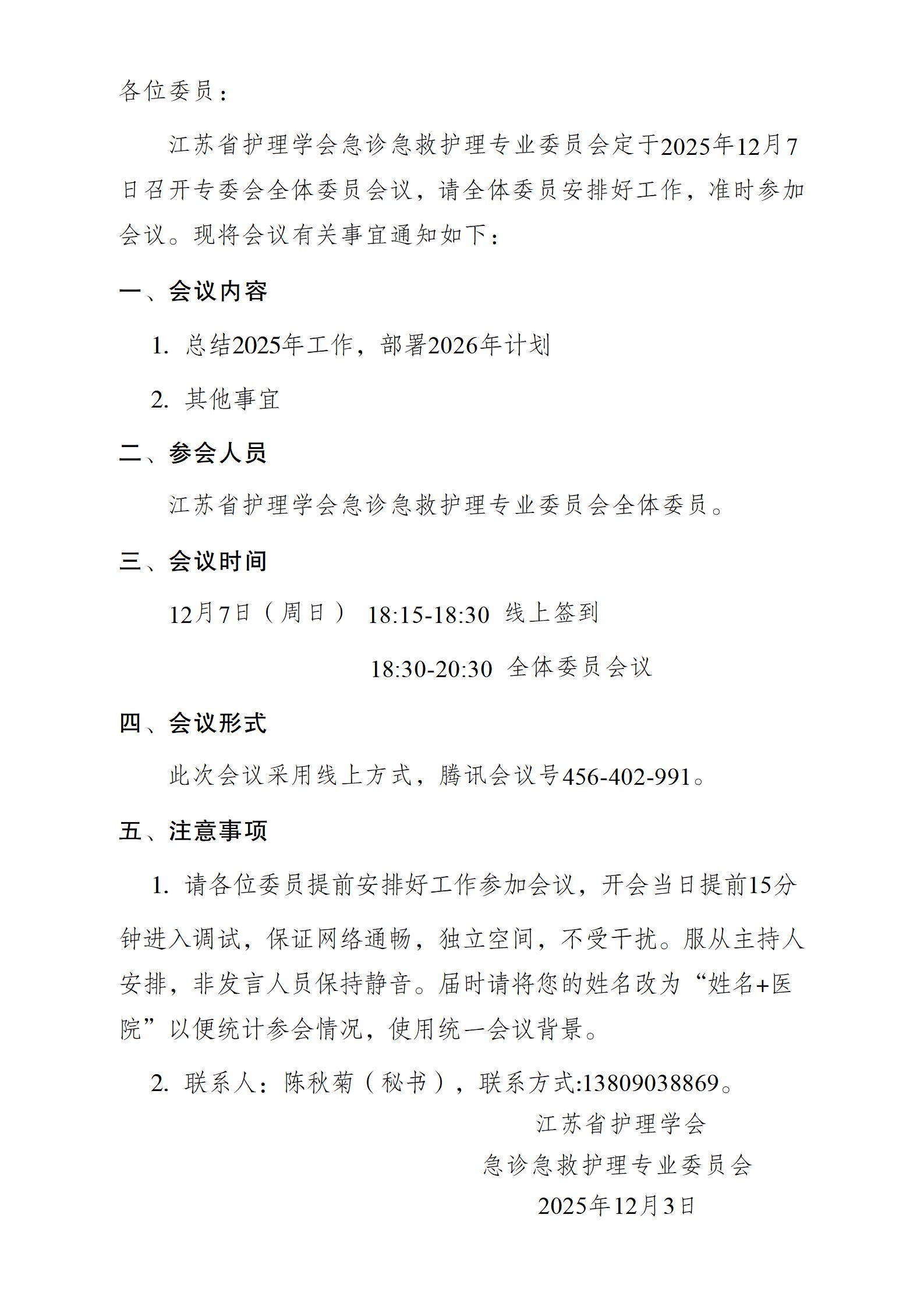 关于召开2025年江苏省护理学会急诊急救护理专业委员会全体委员会议的通知.pdf