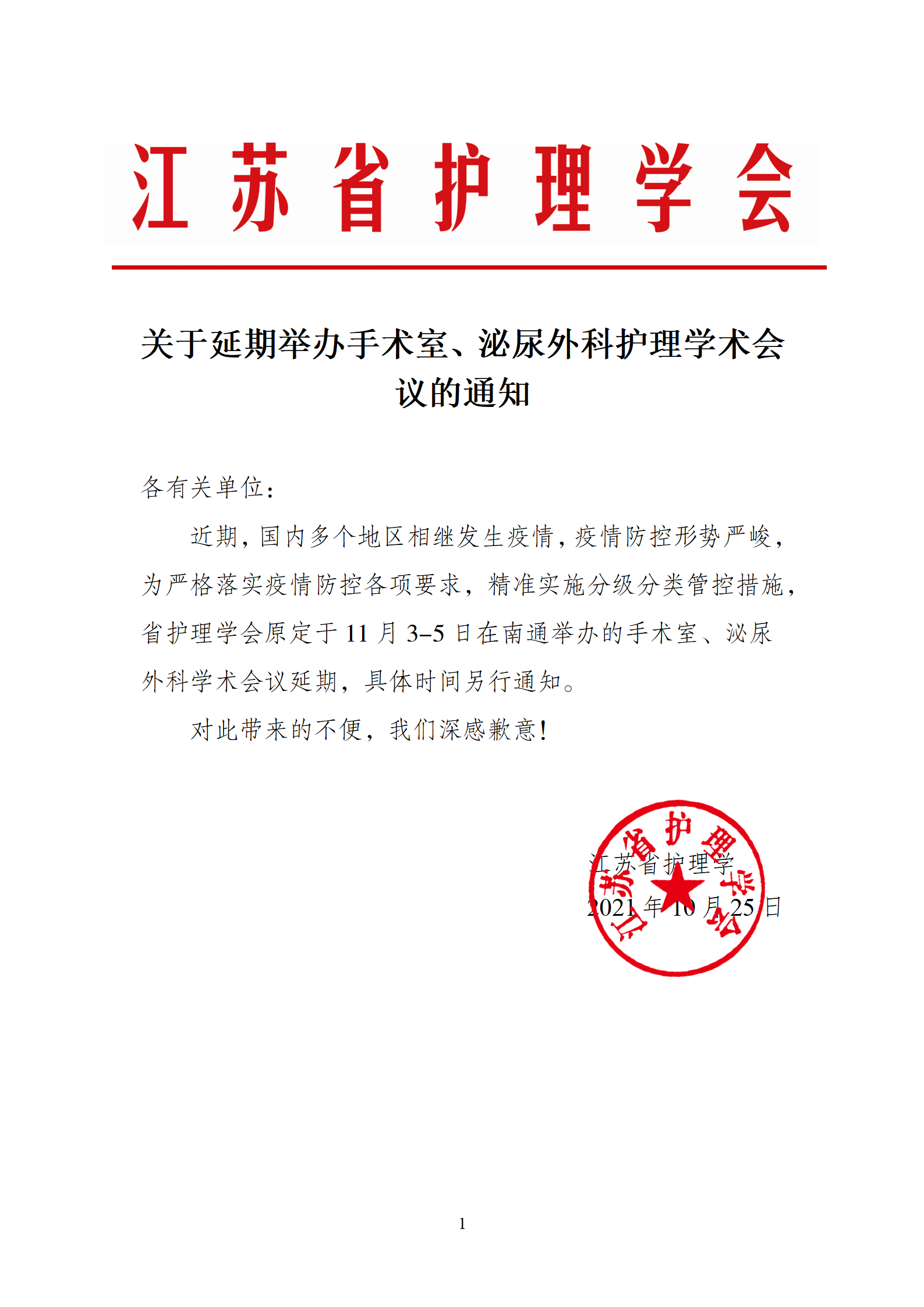 关于延期举办手术室、泌尿外科护理学术会议的通知