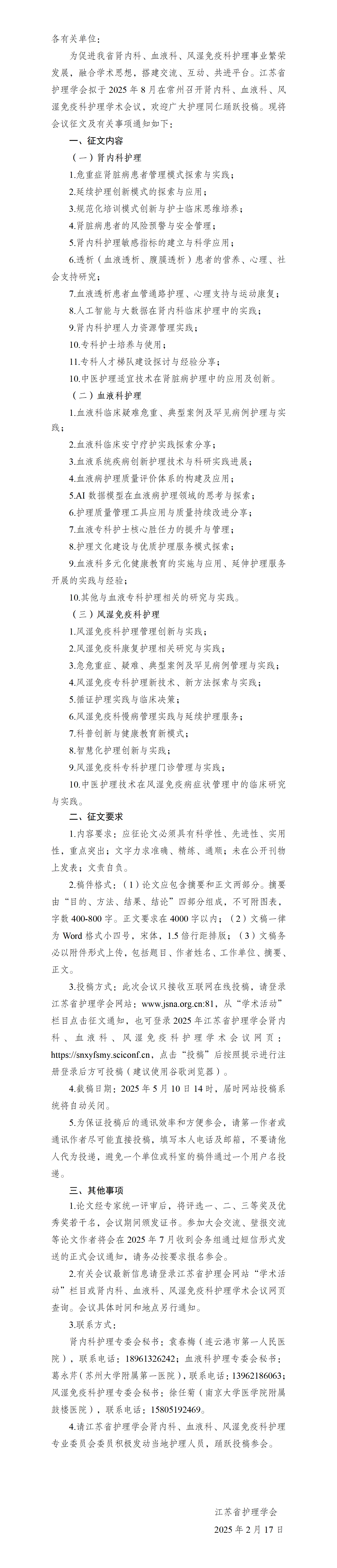 江苏省护理学会肾内科、血液科、风湿免疫科护理学术会议征文通知.pdf
