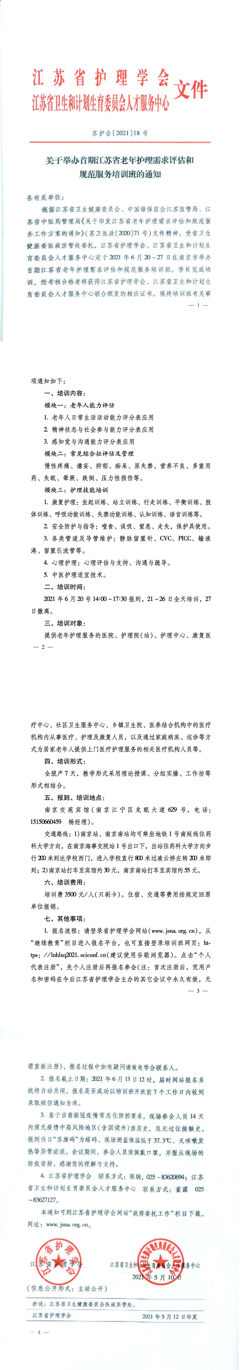 关于举办首期江苏省老年护理需求评估和规范服务培训班的通知