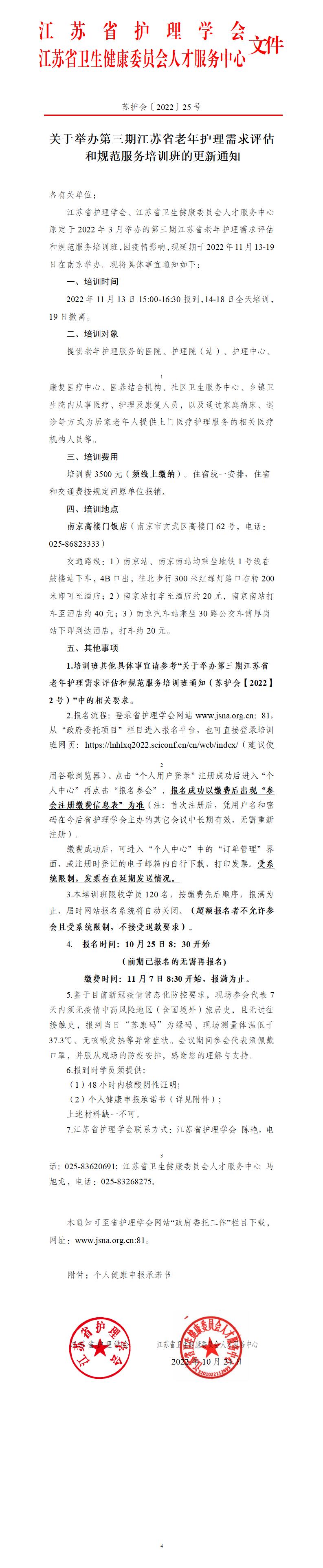 关于举办第三期江苏省老年护理需求评估和规范服务培训班的更新通知
