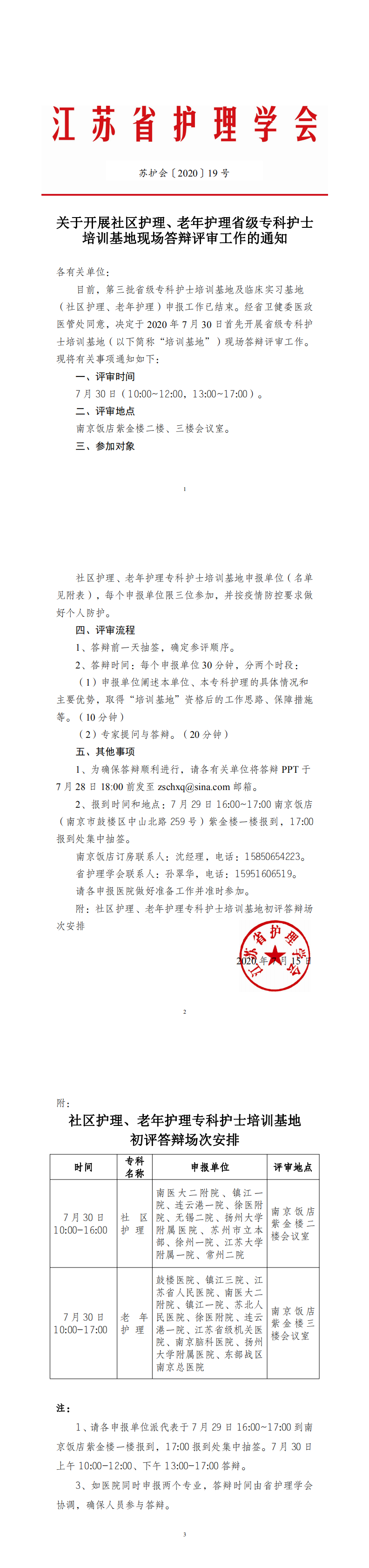 开展社区护理、老年护理省级专科护士培训基地现场答辩评审工作的通知