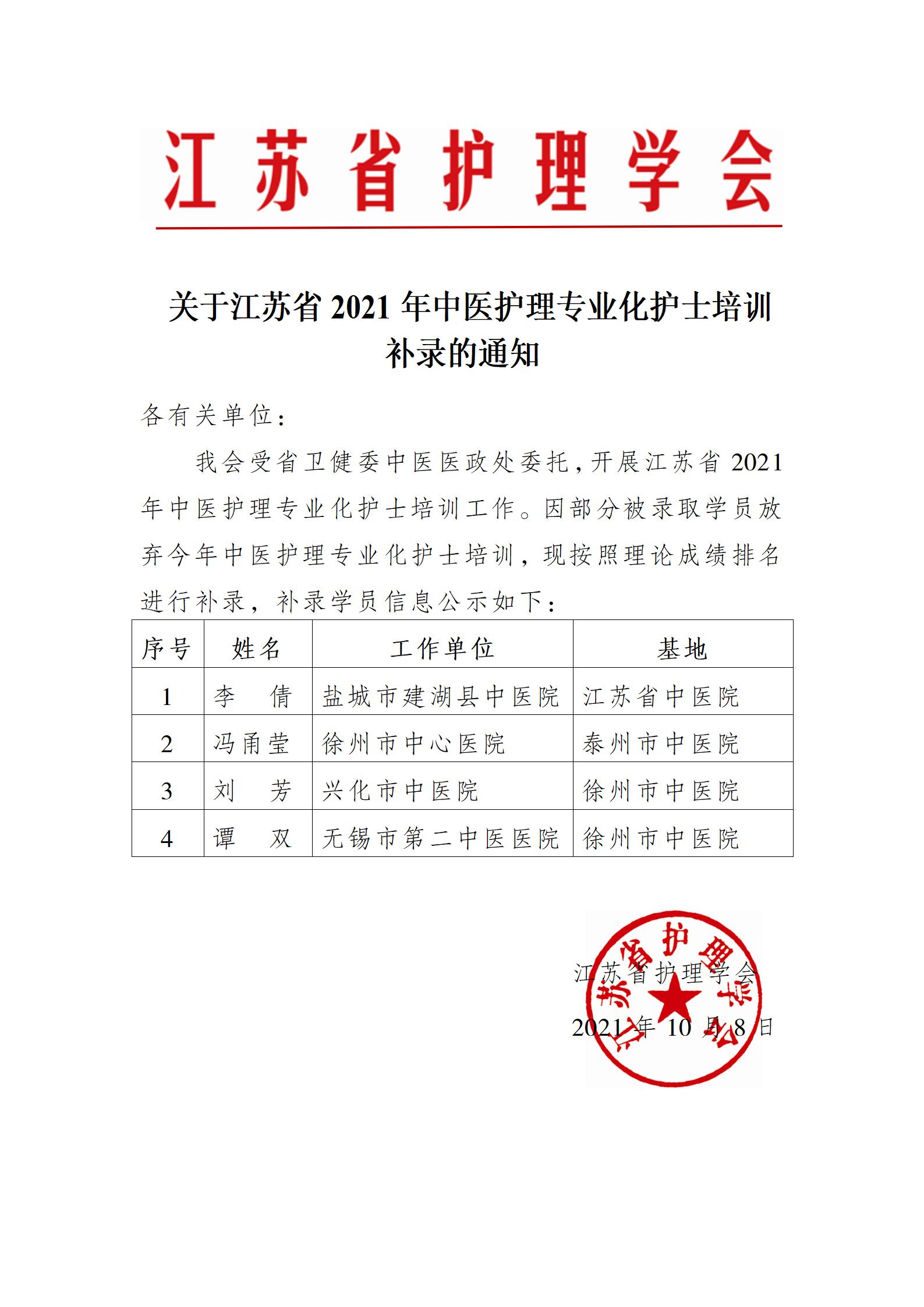 关于江苏省2021年中医护理专业化护士培训补录的通知.pdf